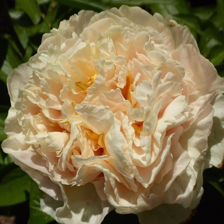 Die Blüte ist gut gefüllt, ohne jegliche Staubblätter, allerdings können meist in der Mitte vereinzelt Staminodien zwischen den Blütenblätter vorkommen. Die Sorte ist fertil, mit tiefrot-violetter Narbe und stetzt nach Handpollinierung meist zuverläs-sig Samen an.
