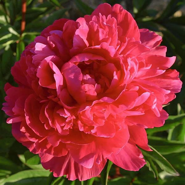 Die Pfingstrose „Kansas“ ist eine wahre Legende und Gewinnerin der begehrten Goldmedaille der American Peony Society. Sie ist berühmt für ihre unübertroffene Farbkraft: Die riesigen, vollgefüllten Blüten leuchten in einem brillanten, klaren Melonenrot bis kräftigen Purpurrot. Das Besondere an dieser Sorte ist ihre Farbstabilität – während andere rote Pfingstrosen in der heißen Mittagssonne oft verblassen, behält „Kansas“ ihre intensive Leuchtkraft bis zum letzten Tag.